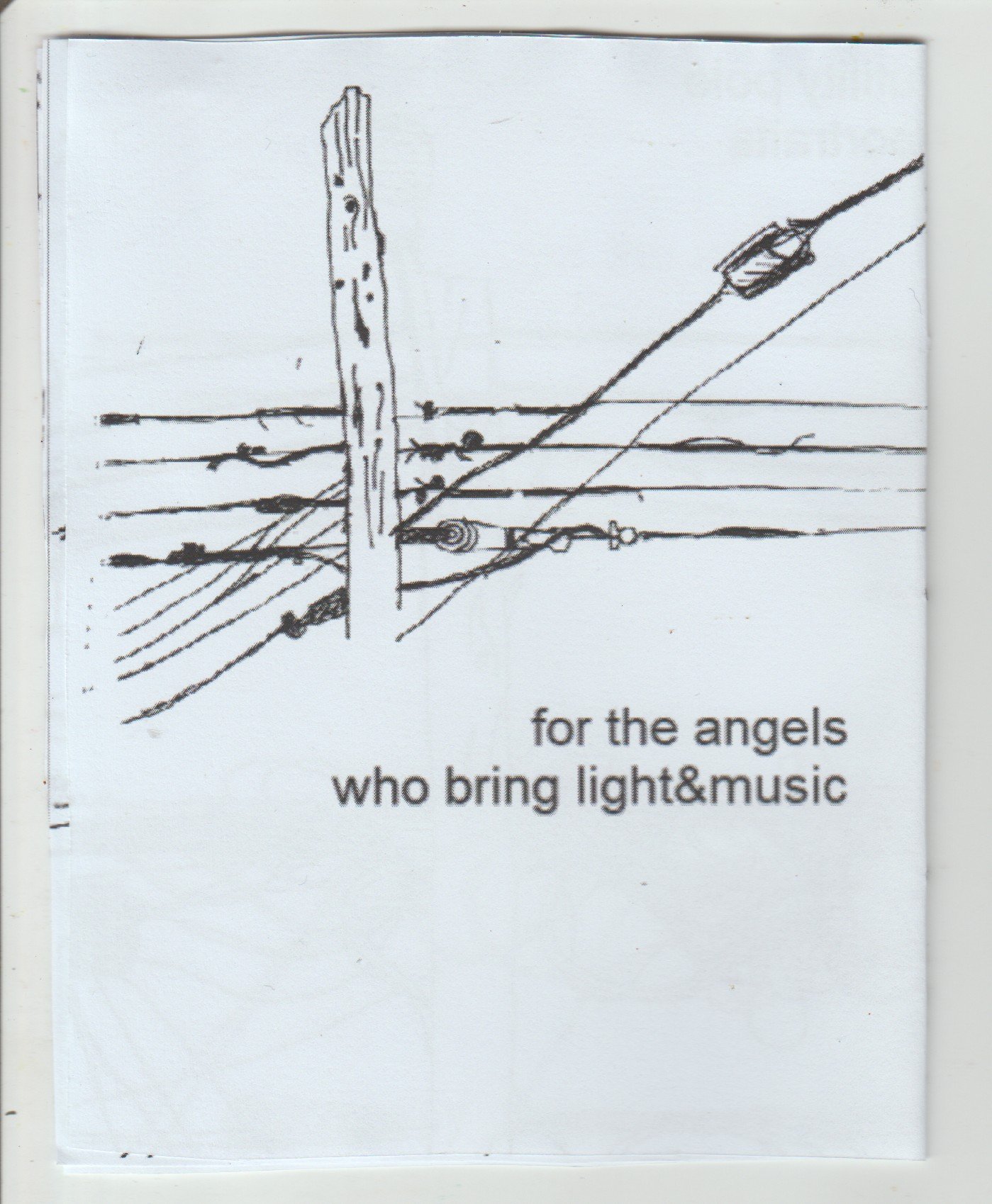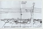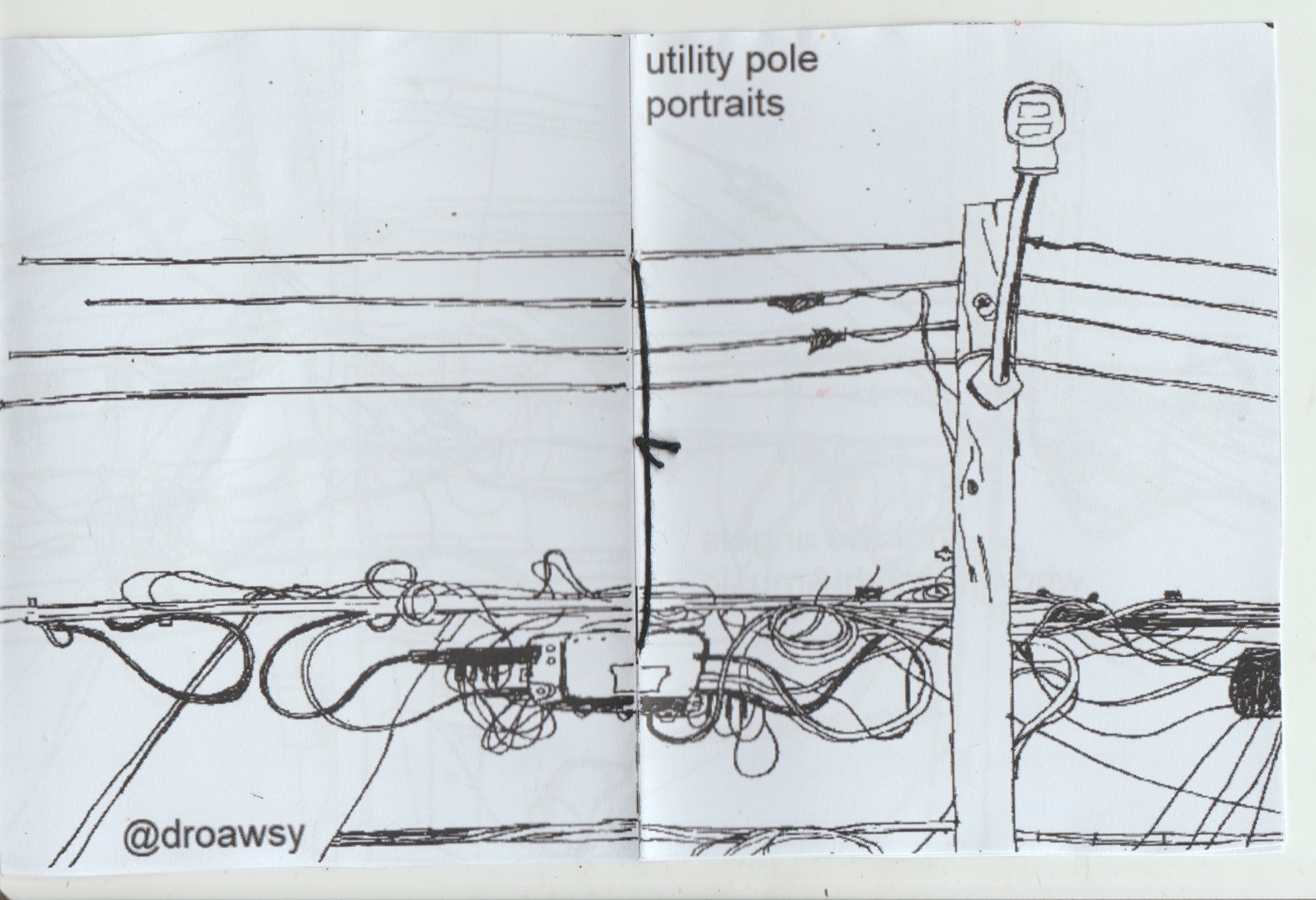 quarter size 8 page zine of utility poles. hand-bound with black thread